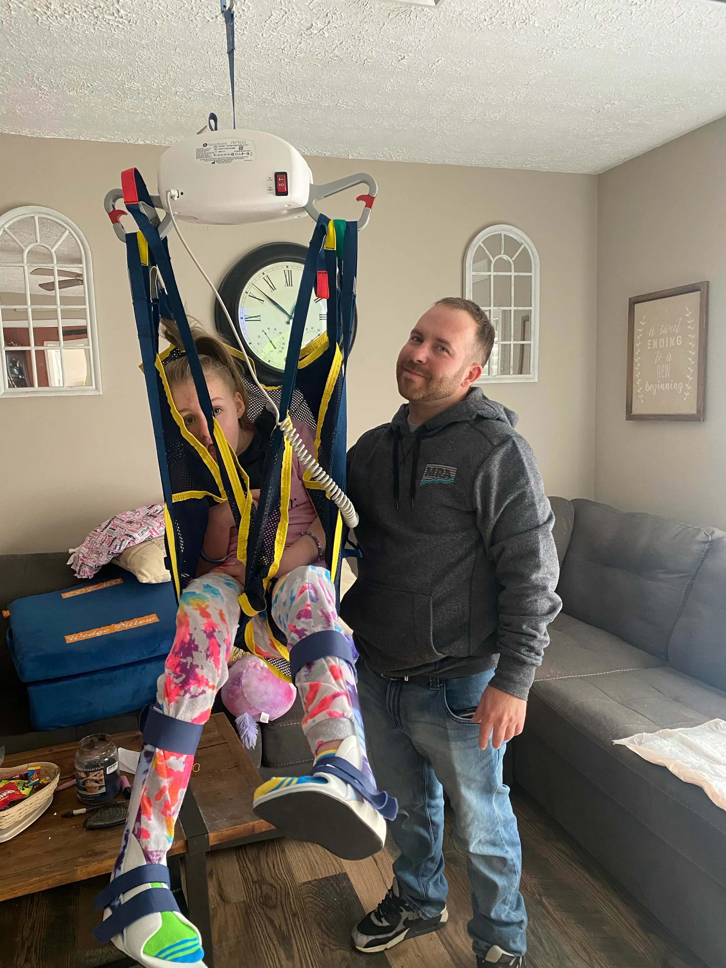 Thanks to our incredible donors, Holton’s Heroes was able to gift Rylee and her family a motorized lift with tracking so that they can easily transfer her in and out of her wheelchair.